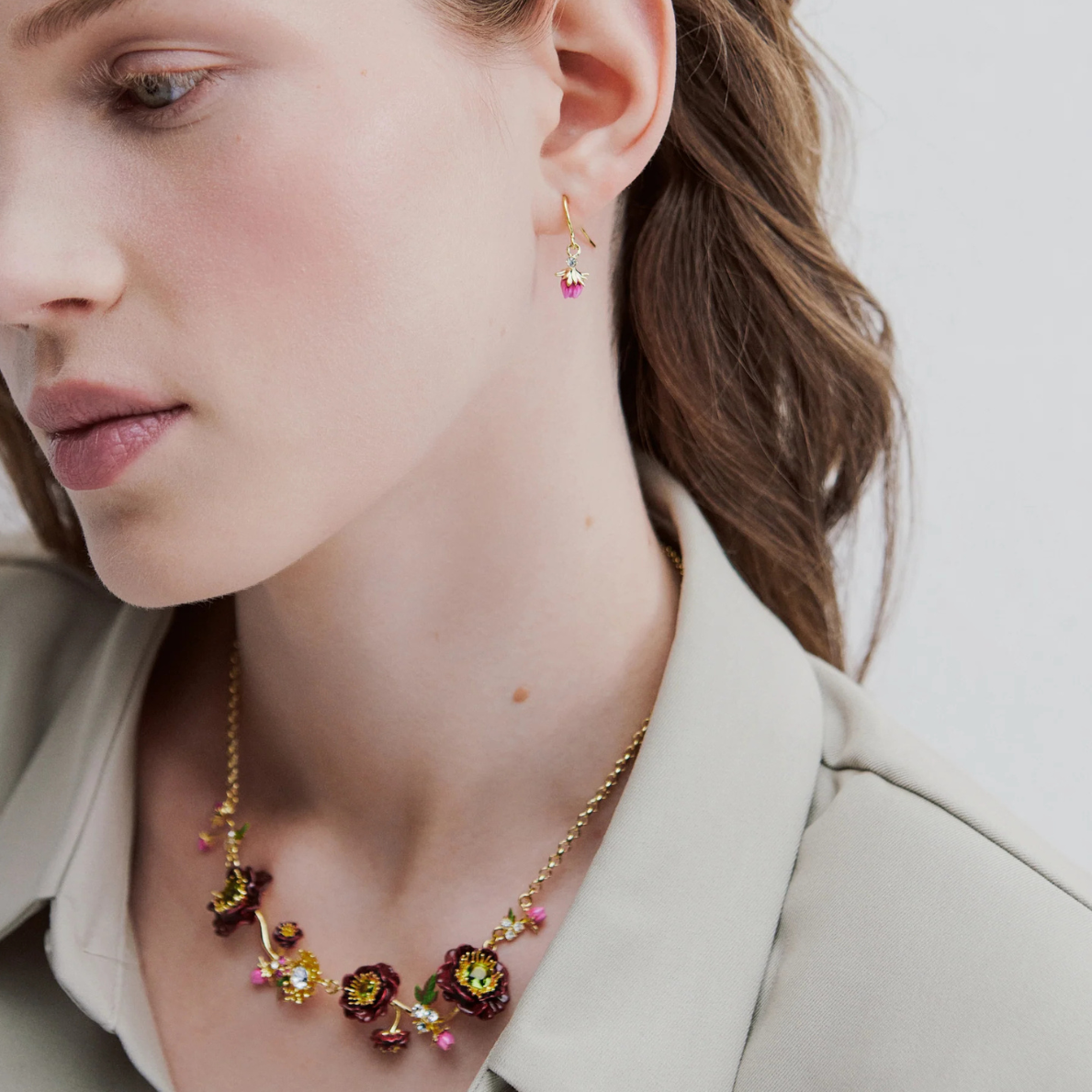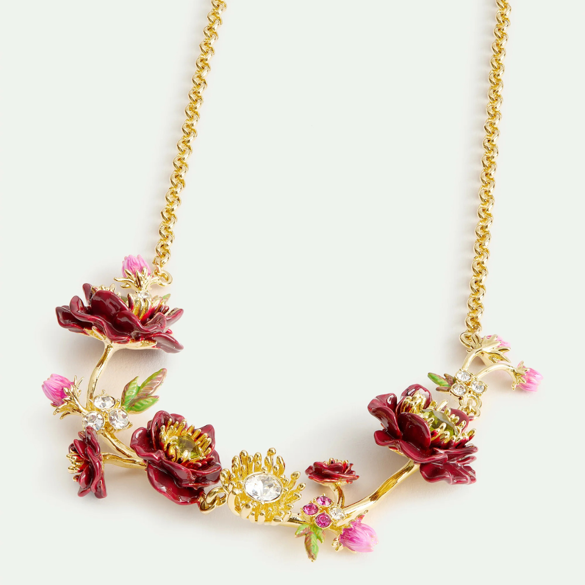 Red poppy and cubic zirconia pendant necklace