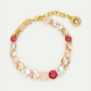 Apricot pink diamantine 5 stone and flower fine bracelet