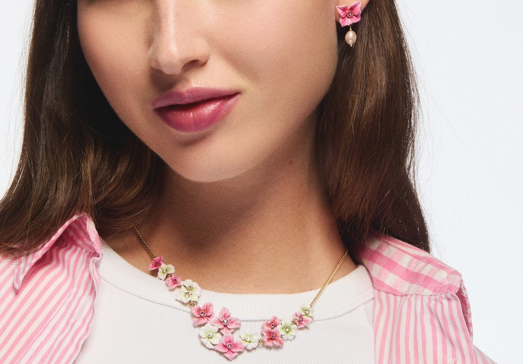 Pink and white hydrangea flowers statement necklace