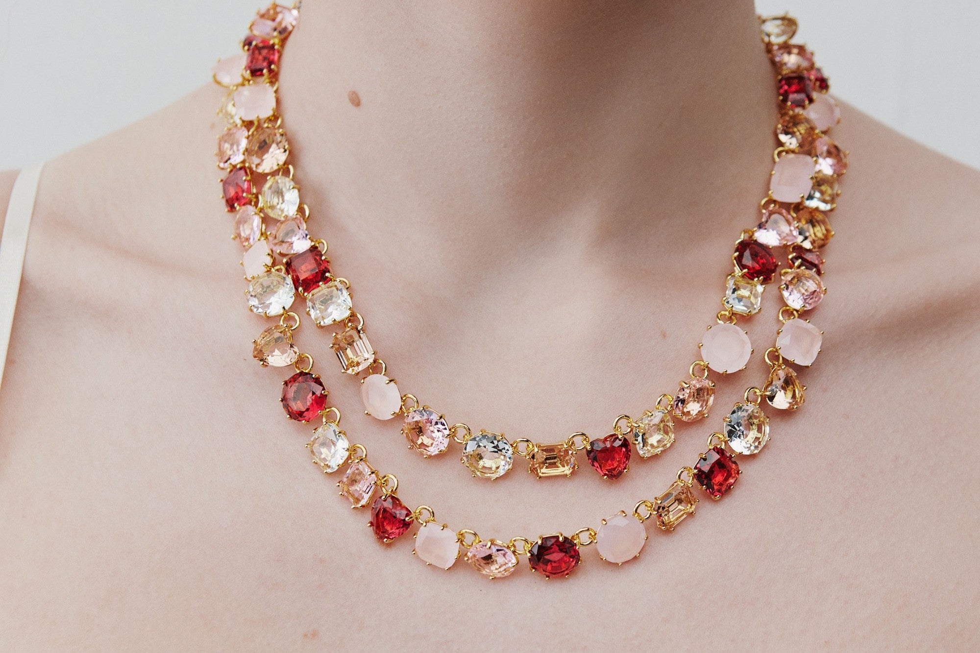 This timeless and elegant collection symbolises the essence of femininity. Les Néréides has drawn its inspiration from classic high jewellery. Pure and refined lines for cut glass stones that each season take on a different colour and finish, sometimes opaque, sometimes matt and sometimes shiny. Meticulously hand-set, the necklaces, bangles and costume jewellery earrings will give a majestic touch to any little black dress.