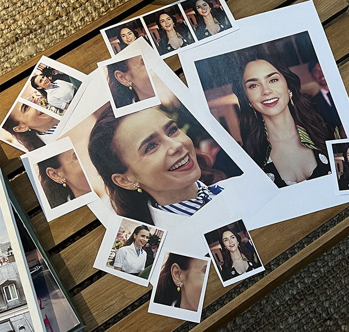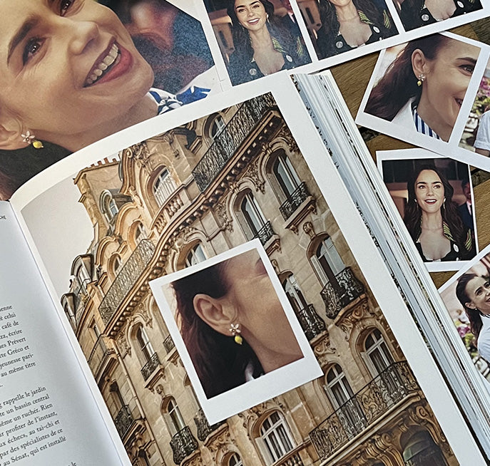 This seaon, Emily in Paris or in Rome, Emily (Lily Collins) wore our earrings from our Jardin de Provence and Mignon Citron collections in Episode 10.