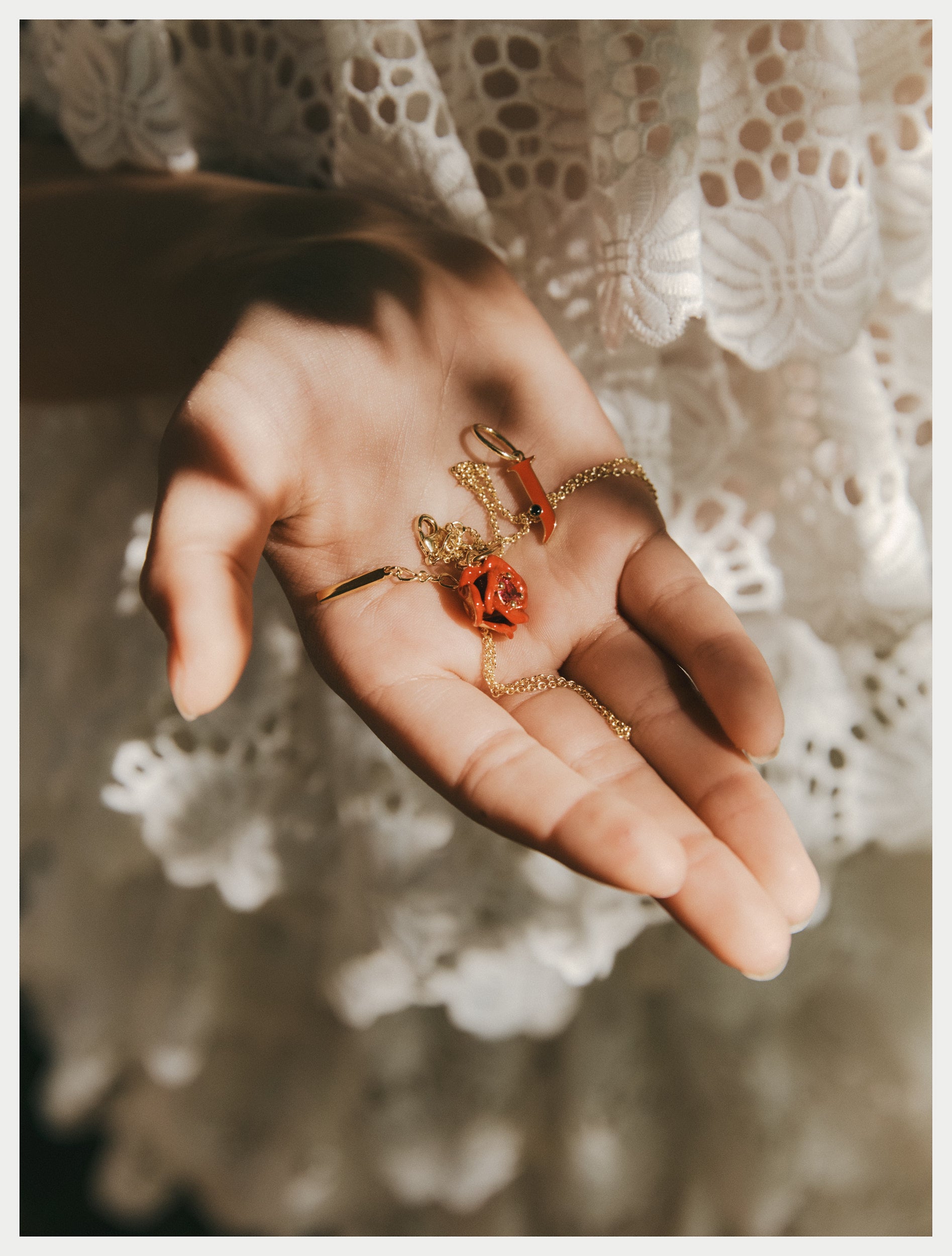 Combining the elegance of Les Néréides jewellery with Rachel Bakewell’s creative flair, this collection pays tribute to the bonds that unite women and their loved ones.
