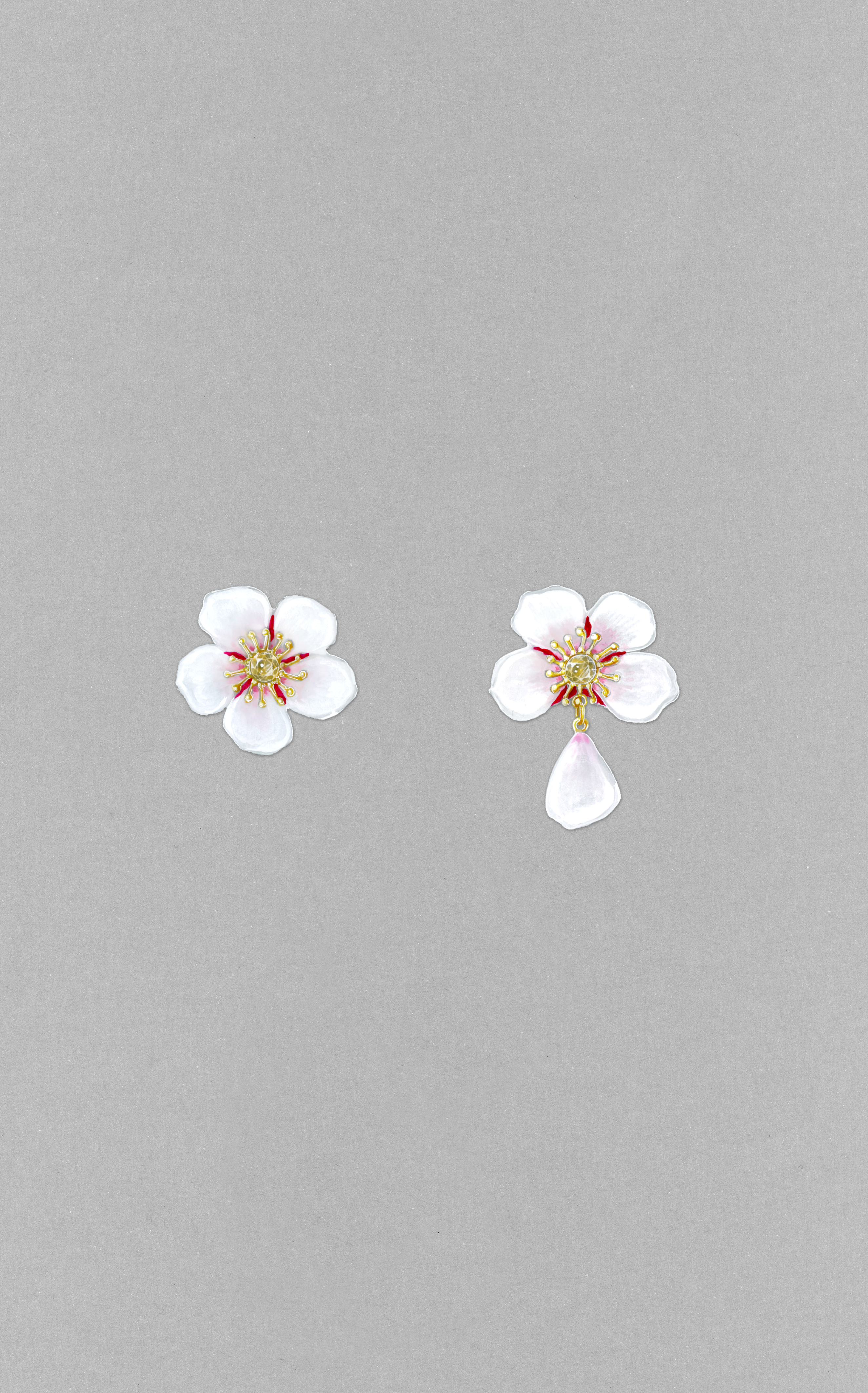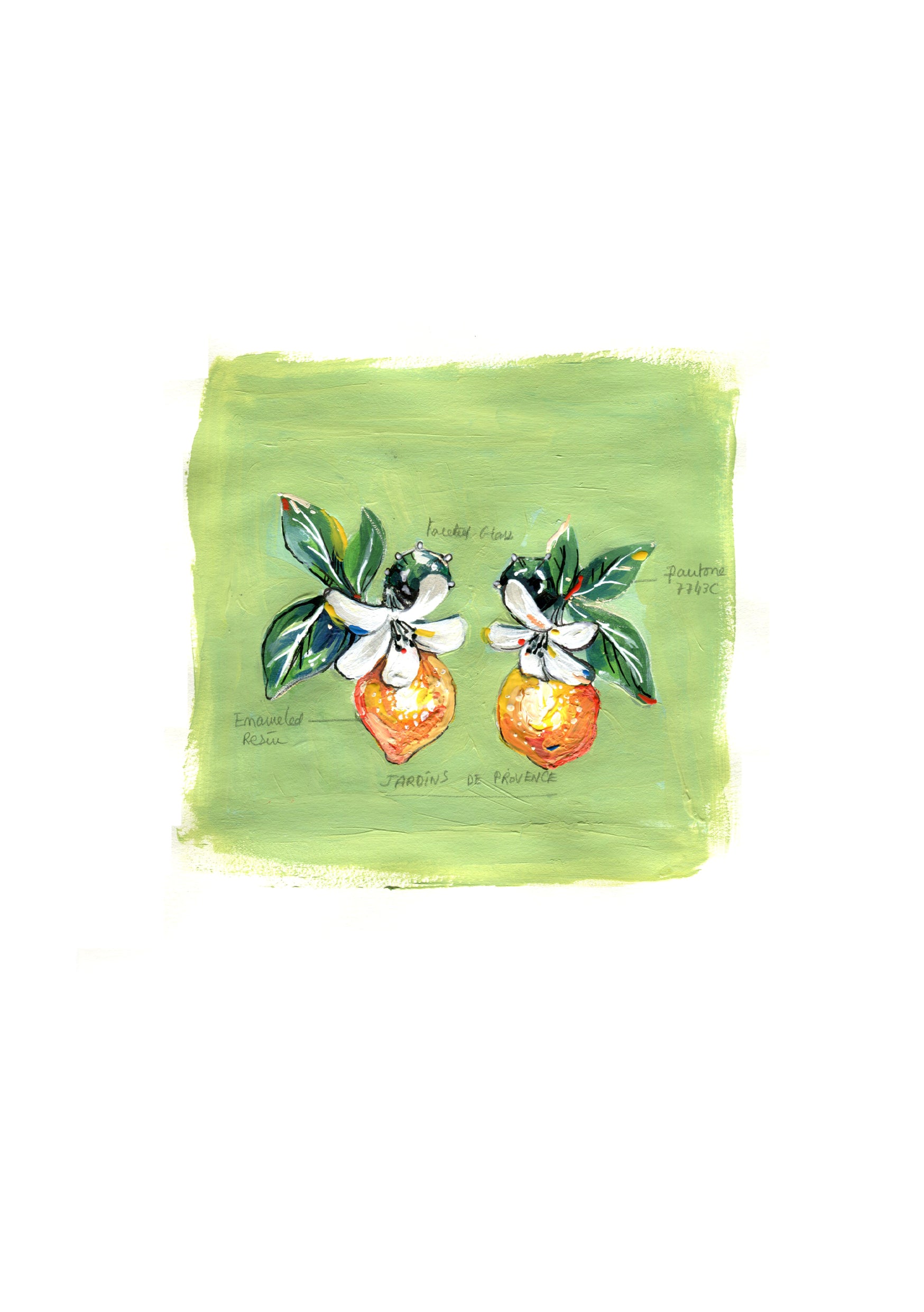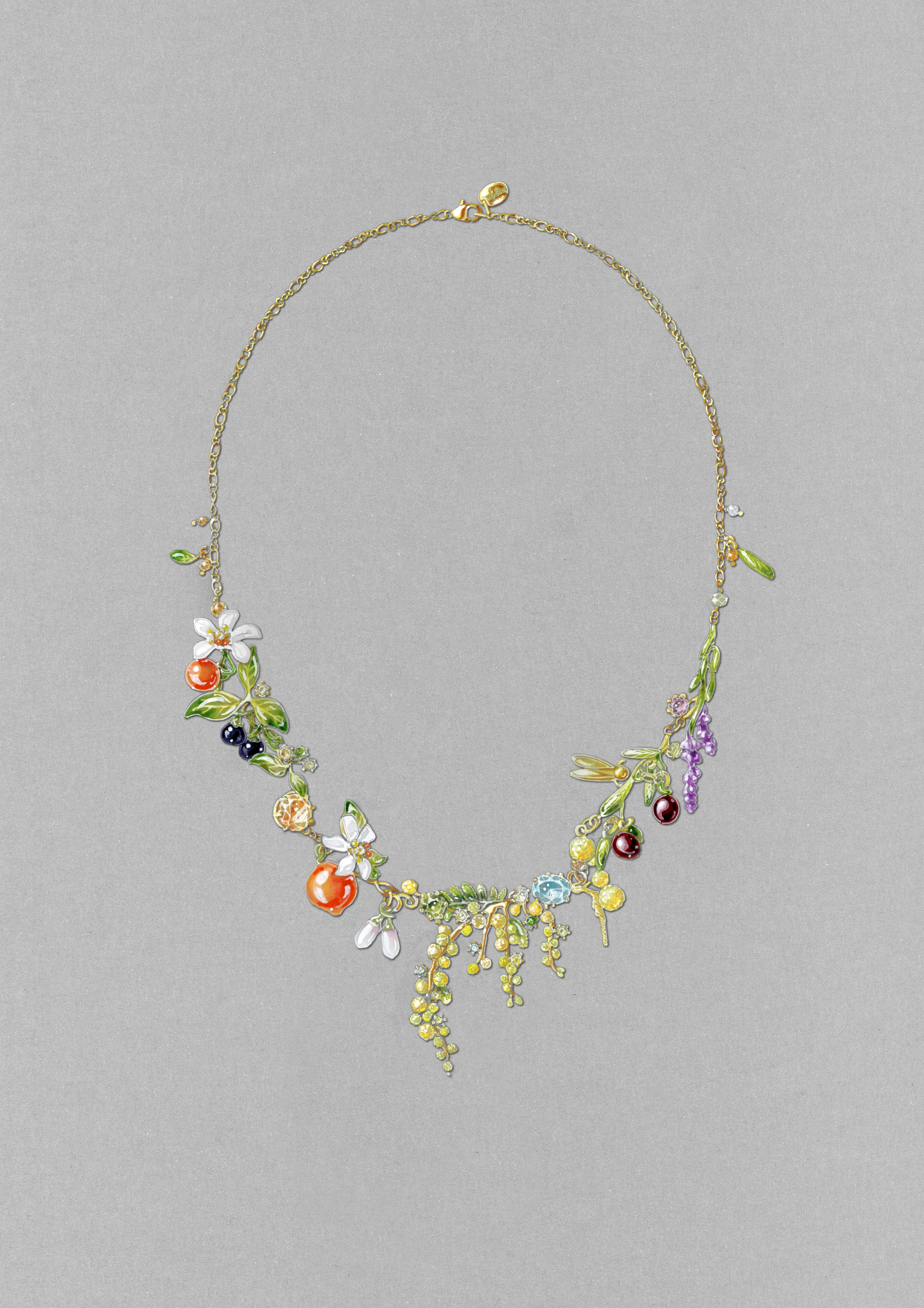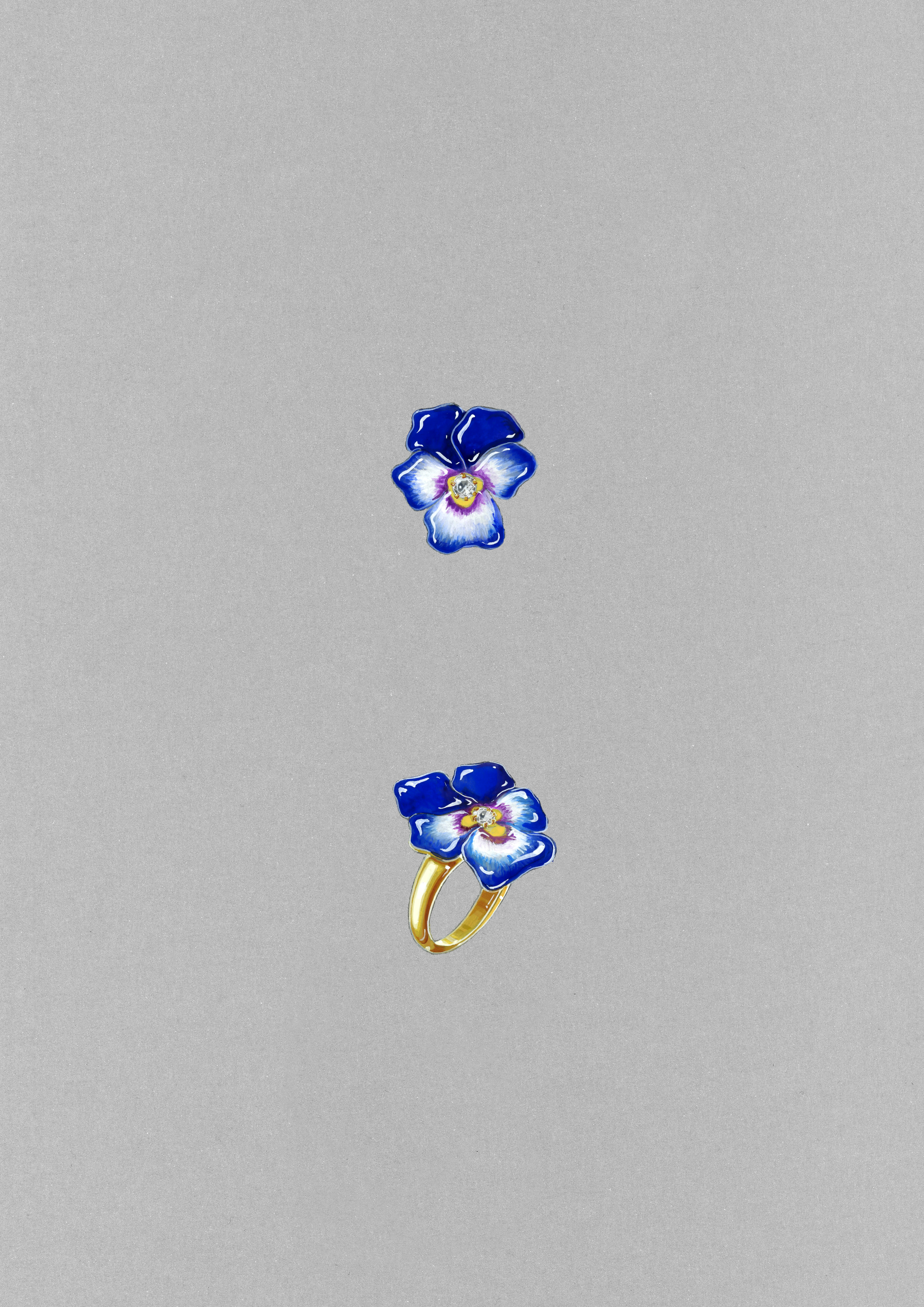 Each piece of jewellery is born of a design straight from the imagination of its creators. As in fine jewellery, the pieces are "gouached". The jewels are then made and subtly painted by hand using the enamelling technique.