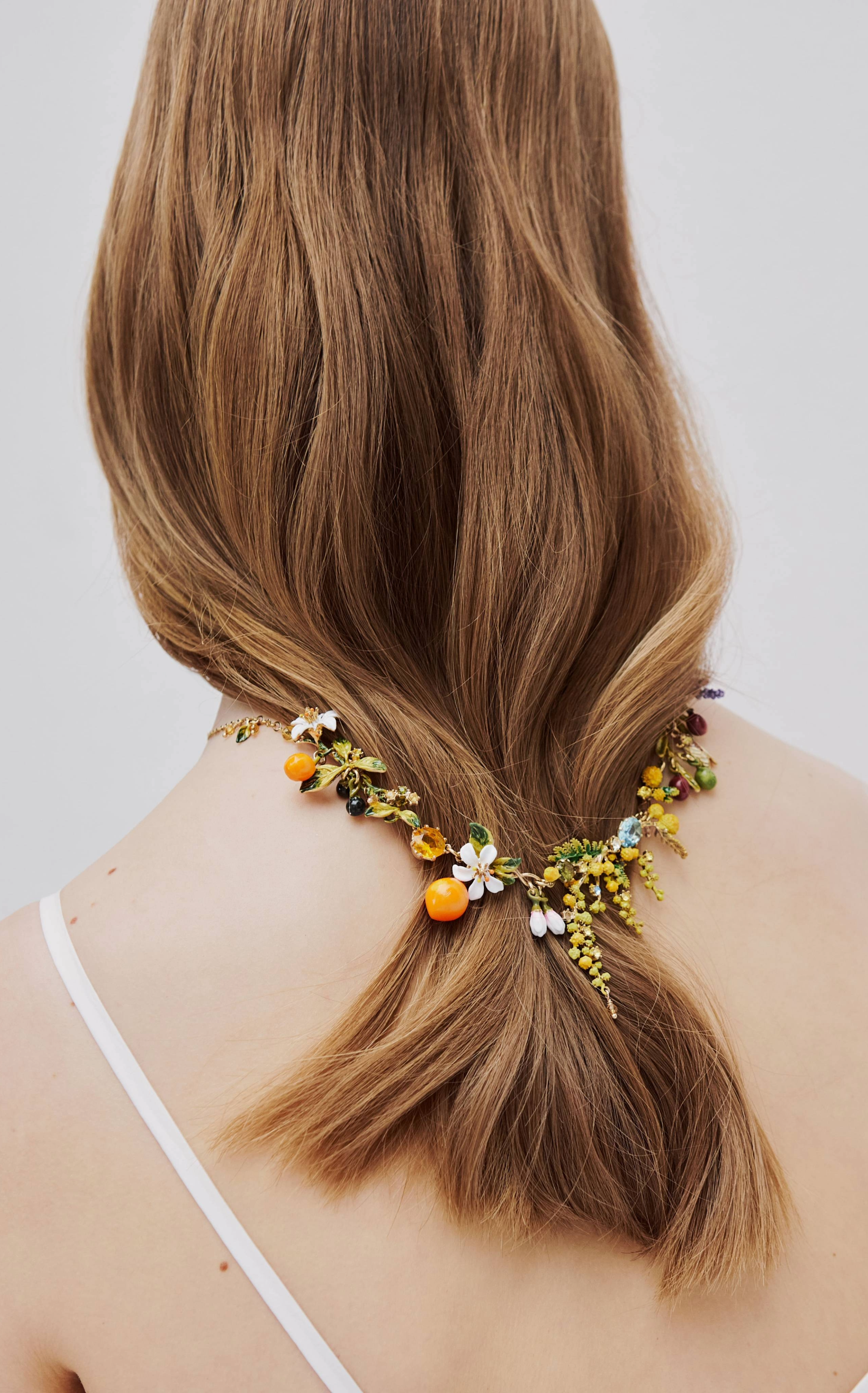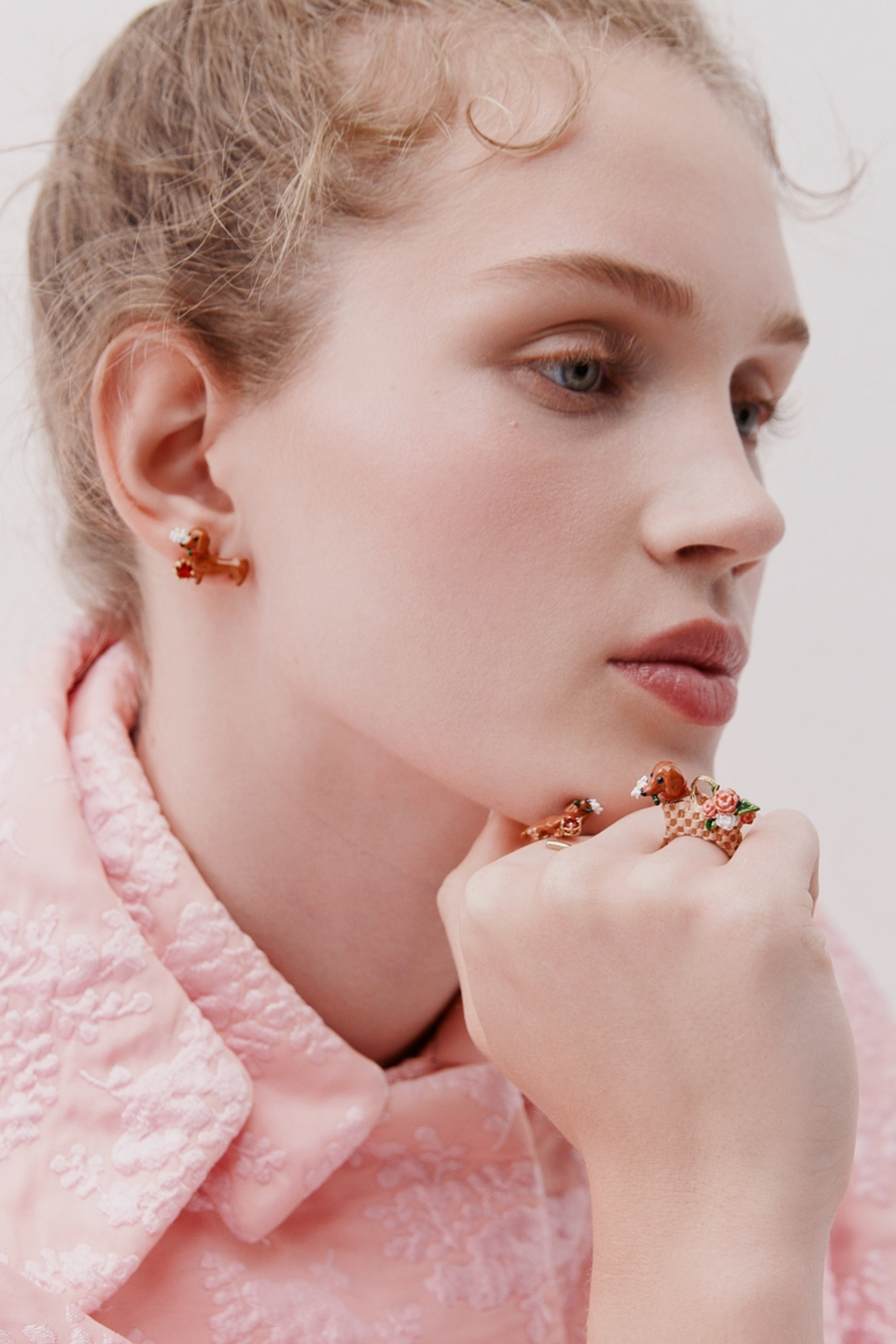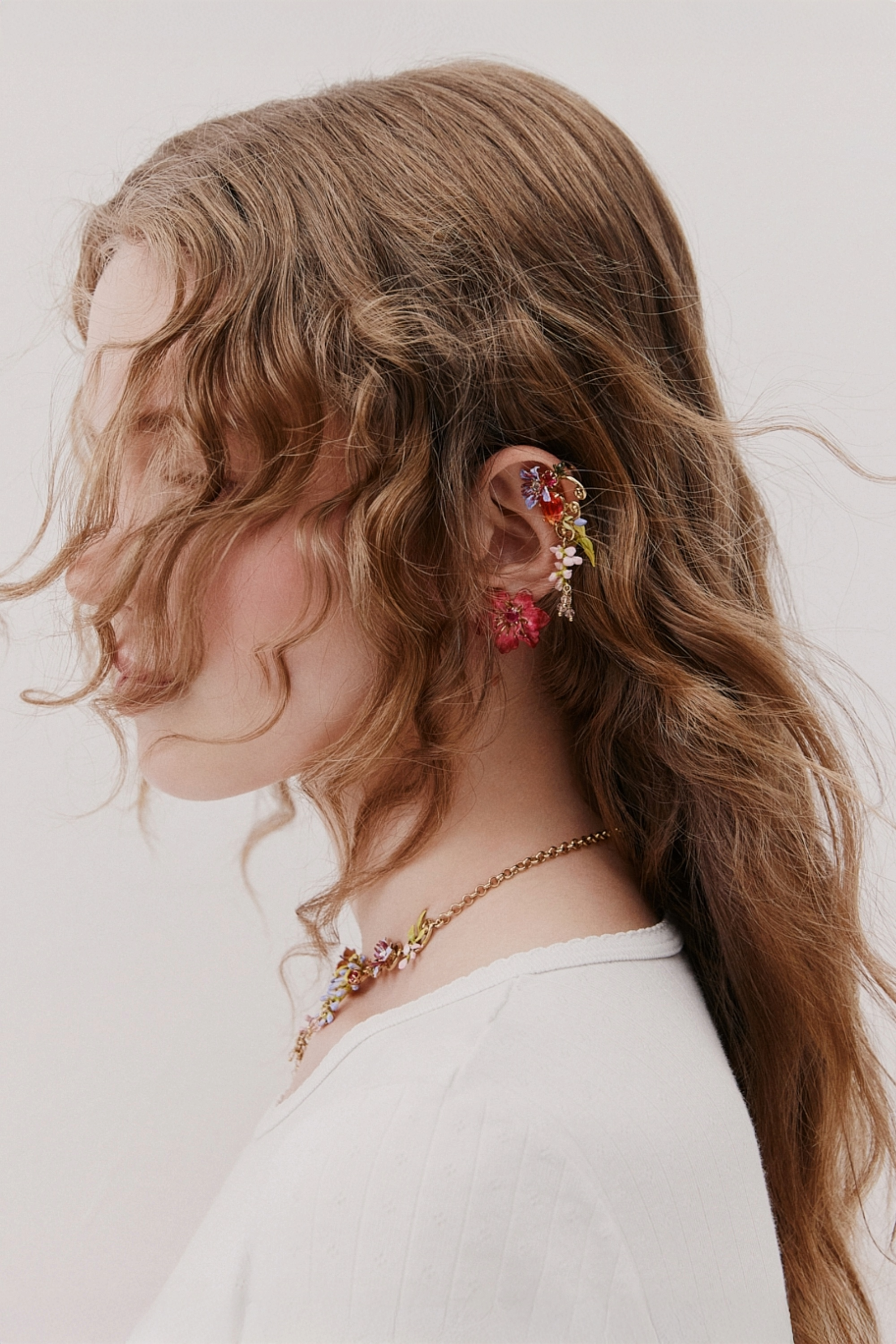 And it's built with the person who wears it because it's a dialogue of the senses and emotions. It's a talisman. A little totem of spring, berries and wild bouquets picked on holidays, coral and iridescent pearls, the nostalgia of a late summer or the playful flutter of a ladybird landing on our finger.