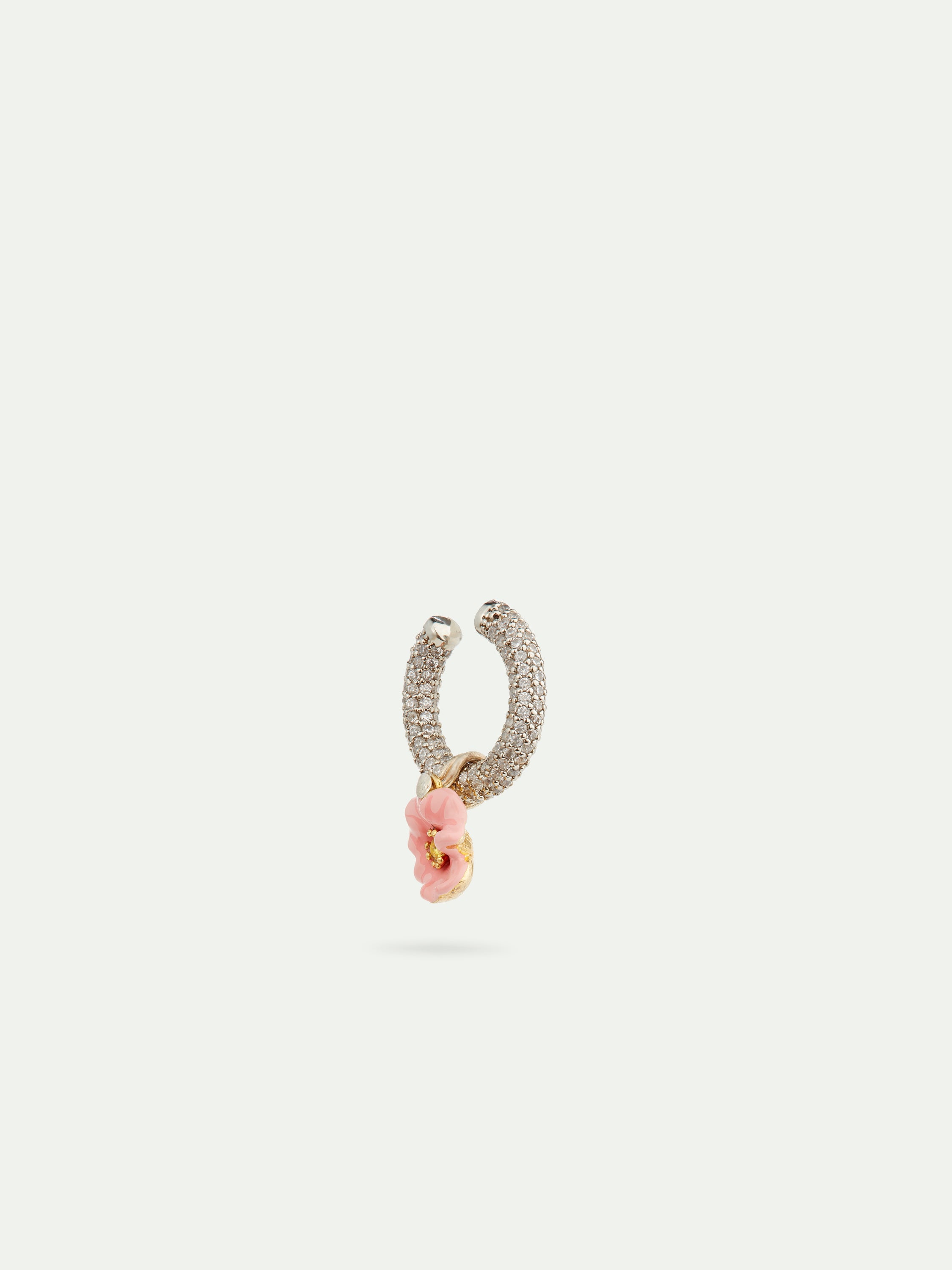 Pink flower and grey ear cuff